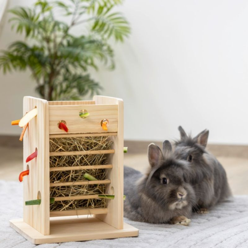 Elősegíti az egészséges emésztést: a játékos és lassú táplálékfelvétel elősegíti az emésztést, ami különösen fontos a nyulak és rágcsálók egészsége szempontjából.