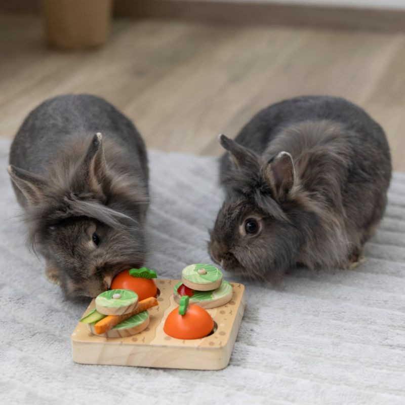 Innovatív oktatójáték órákig tartó tevékenységet és szórakozást kínál a nyulaknak és más kedvenceknek.